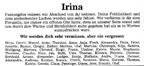 Von Irina an alle, die sie gern hatten...