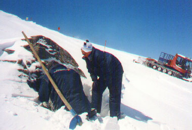 Es war ein trüber regnerischer Tag, an dem wir durch ein düsteres Tuxertal fuhren. Wir wollten eine Gedenktafel an der Stelle anbringen, an der unsere Irina die letzten Augenblicke ihres Lebens verbrachte. Wir hatten keine Hoffnung an diesem Tag die Tafel anbringen zu können, denn der Wetterbericht sprach von Nebel und Schneefall auf dem Gletscher. Wie verabredet trafen wir uns mit Herrn Gaugg (Geschäftsführer der Hintertuxertaler Gletscherbahnen) an der Talstation. Mit Gondel und Raupenfahrzeug ging es in die Höhe, näher und näher der Stelle, wo das Schreckliche geschah. Stumm schauten wir in die schneebedeckte Bergwelt, bewusst, dass es die Bilder waren, die Irina an ihrem Todestag sicherlich noch mit viel Freude in sich aufgenommen hatte. Liebte sie doch von klein auf die Berge und das Schifahren.