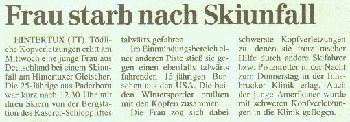 Bei dem Unfallbeteiligten handelt es sich nicht um einen 15-jährigen amerikanischen Freizeit-Skiläufer, sondern um Jan -Michael Kochalski aus Schottland, der dem britischen Juniorteam angehört und von einem amerikanischen Trainer trainiert wurde. Er befand sich nach einer Trainingseinheit am Morgen auf einer Freifahrt ins Tal. J. M. Kochalski wurde mit geringfügigen Verletzungen bereits nach zwei Tagen aus der Innsbrucker Universitätsklinik entlassen.